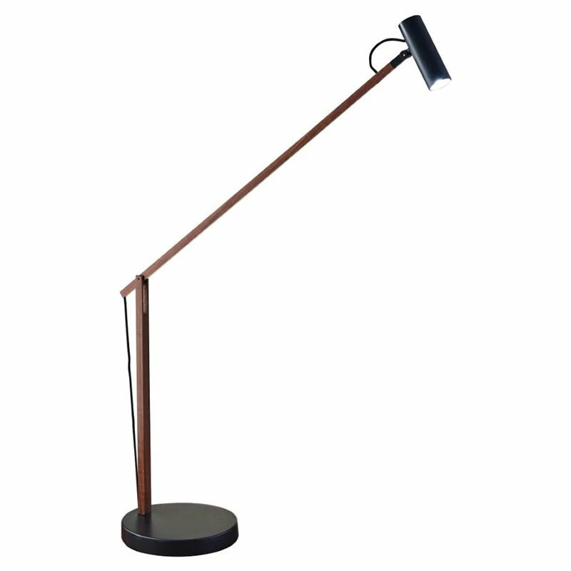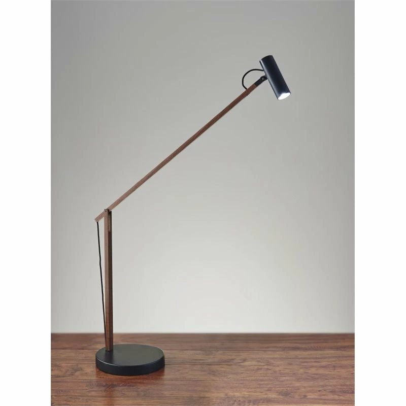 A flexible task light, the Crane LED desk lamp has a long, walnut wood arm that is easy to adjust in height and rotation. Forsman was raised in the area of Sweden known for its forests and furniture industry, and his love of wood is easily reflected in this item. The mix of black and dark walnut yields a rustic, yet contemporary stylistic origin. The lamp makes use of its black cloth covered cord and a special spring hidden in the base to balance at any angle you choose to pose it. The light source is equally spare, a small but powerful, energy-efficient 5 Watt LED light source; the simple 4-way touch dimmer switch is located at the end of the shade. The included 5W LED produces 520 lumens of warm light (3,000K at 80 CRI) and is rated to last over 30,000 hours.