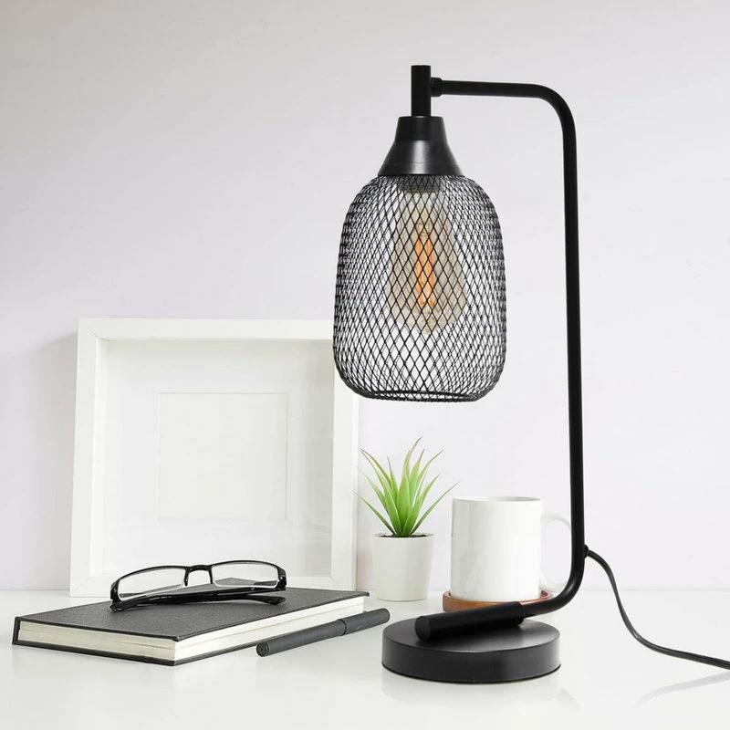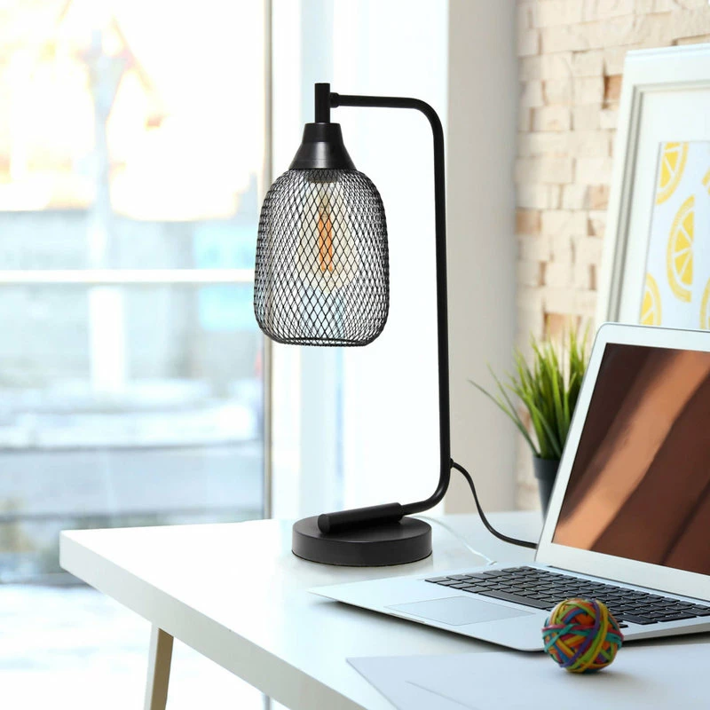 lluminate your home in style with this simple yet stylish desk lamp. The mesh shade allows the light to shine through and give a glowing effect when lit. For the contemporary, modern, industrial or farmhouse home, this lamp is sure to add a chic touch to any room in your home! Perfect for your living room, bedroom, office, apartment or college dorm! HELPFUL TIP: To get the complete industrial look, we recommend using a decorative Edison/Vintage bulb (not included).