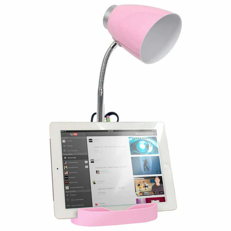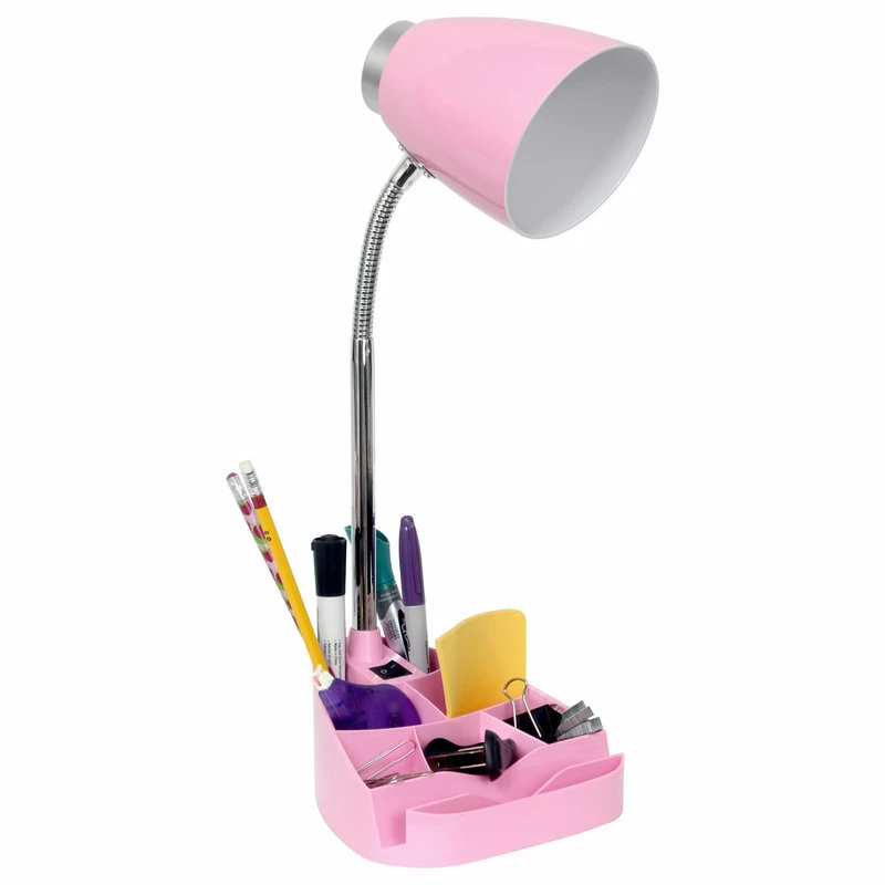 Style and functionality meet with this fun organizer desk lamp with iPad stand. It is beautifully finished and comes equipped to hold many of the important essentials needed in a desk organizer. The flexible chrome gooseneck allows you to point the light exactly where you need it. ON/OFF flip switch is located on the base for convenience. Organizer includes 8 compartments for storing pens, pencils, paper clips, etc. It also has a spot to rest your iPad, book, or notebook for easy viewing. Perfect for office, kids room, or college dorm!