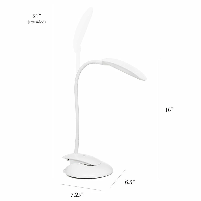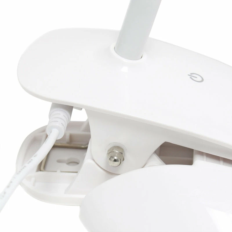 Perfectly suitable for all environments, this 3 step dimmable LED lamp can be used as a clip light, or can be mounted onto the included round base and instead used as a desk lamp. The clip itself opens approximately 2″ wide and will keep a tight grip on the area you choose to mount it to.