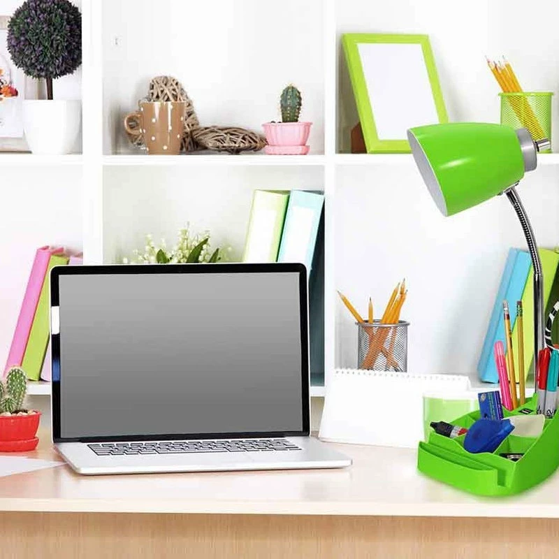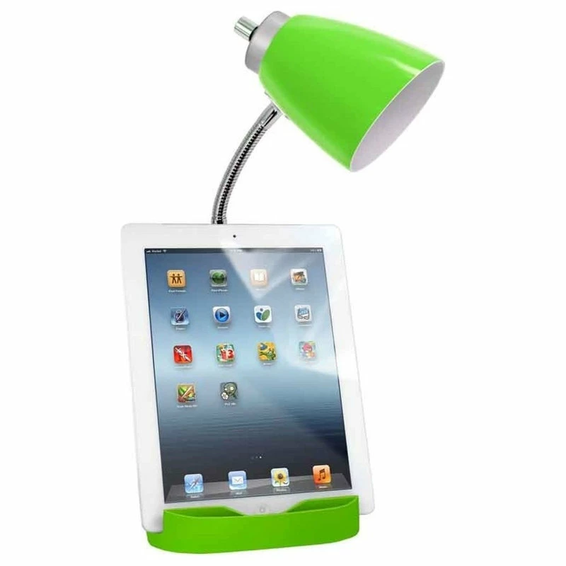 Limelights Gooseneck Organizer Desk Lamp W/iPad Tablet Stand Book Holder and USB port, Green, Style and functionality meet with this fun organizer desk lamp with iPad stand and USB Port. It is beautifully finished and comes equipped to hold many of the important essentials needed in a desk organizer. The flexible chrome gooseneck allows you to point the light exactly where you need it. On/Off rotary switch is located on the shade for convenience. Organizer includes 8 compartments for storing pens, pencils, paper clips, etc. It also has a spot to rest your iPad, book, or notebook for easy viewing with a convenient close by USB Port.