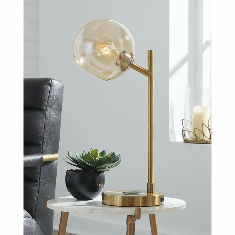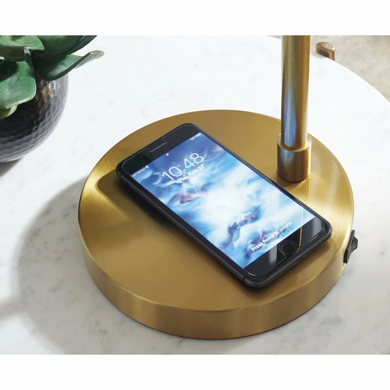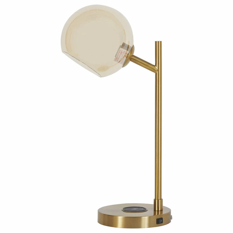 The added functionality of this desk lamp was smartly designed to shine light where you need it most without compromising style. Featuring a wireless charging pad and 1 USB charging port, you can charge up without cords or clutter. The glass shade brings a fresh take on this design making it the ideal lamp for your living room, reading nook or office.
