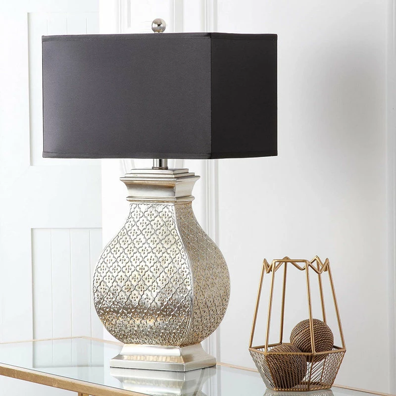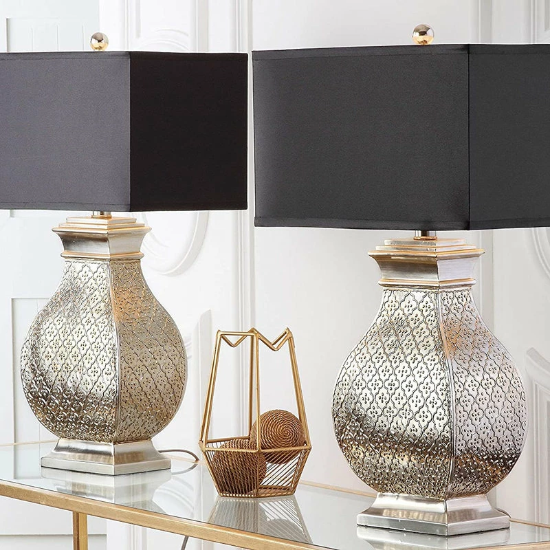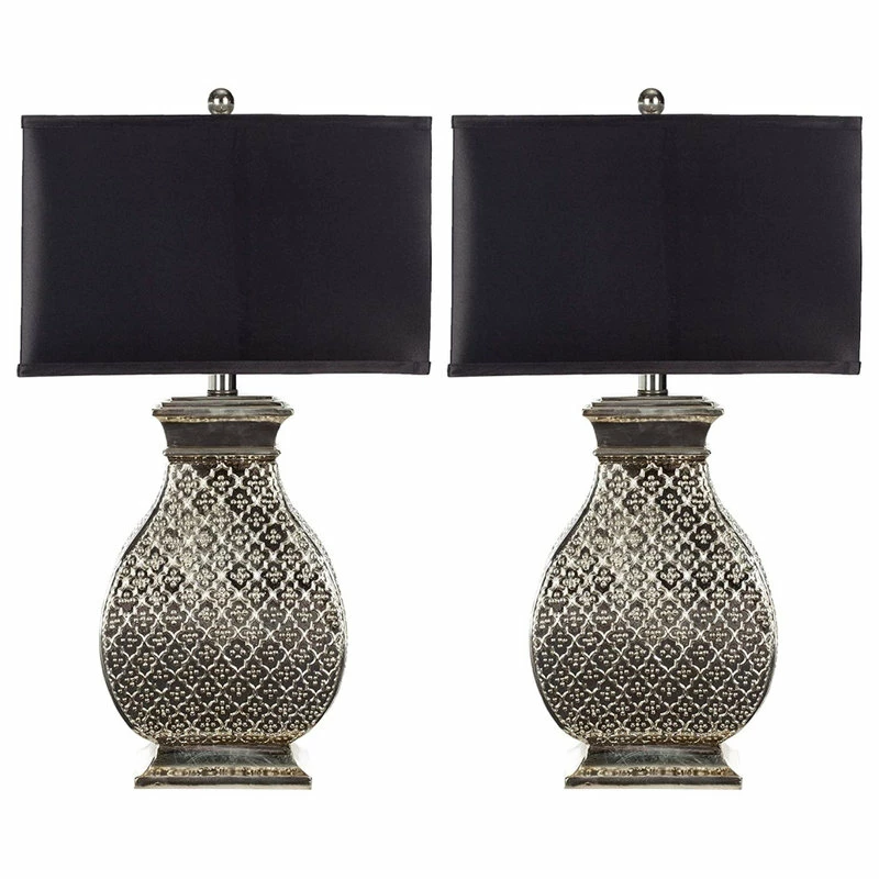 Hot Sale ๐คฉ Decor Love Set Of 2 Table Lamp, Unique Silver Finished Resin Base & Black Rectangle Shade ๐