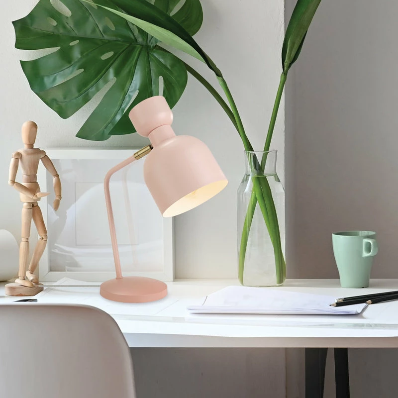 With a 16-inch height, a matte color palette and stylish matte brass pivot joint, the Harper Collection by Globe Electric puts a colorful spin on modern design. The classic style lamp head pivots up and down and from side to side to deliver light exactly where you need it most. The matte pink softens the look while completing the design and adding a pop of color to any room.
