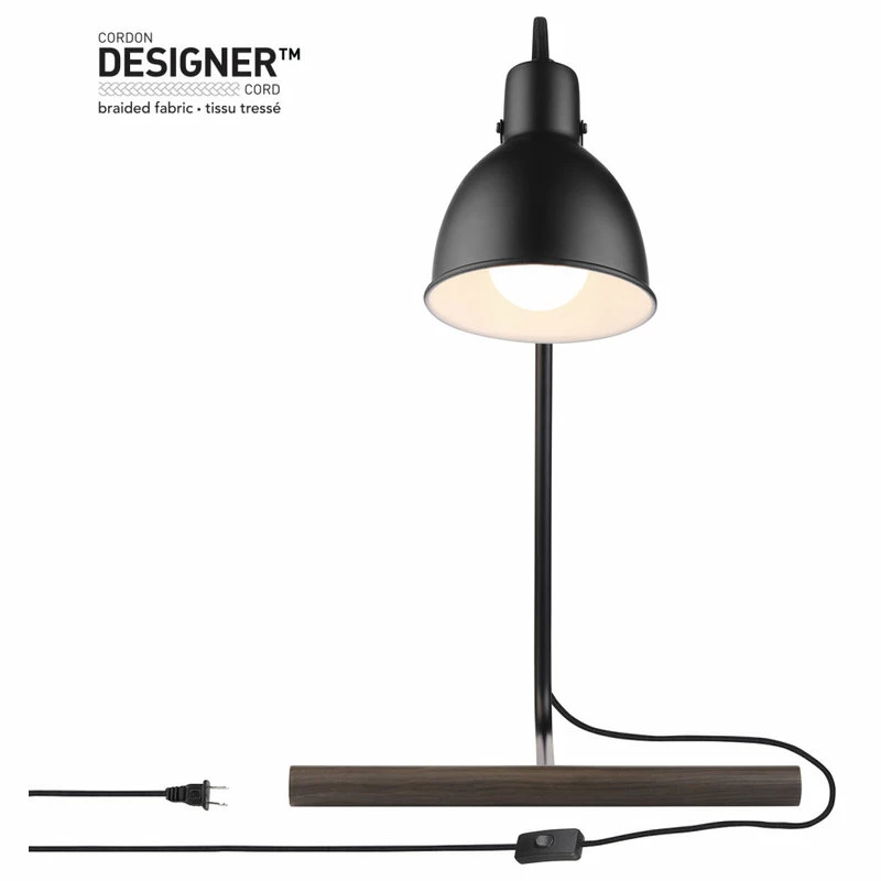Great lighting sets the mood of a room whether it be your office, home office, bedroom or living room decor. The Cole 18″ Desk Lamp by Globe Electric offers a mid-century modern design to complete any dรฉcor style. A stunning matte black shade sits atop a t-shape leg with a faux wood accent base to create the perfect mid-century look. The lamp head pivots up and down to complete a functional design making this an ideal lamp for any space.