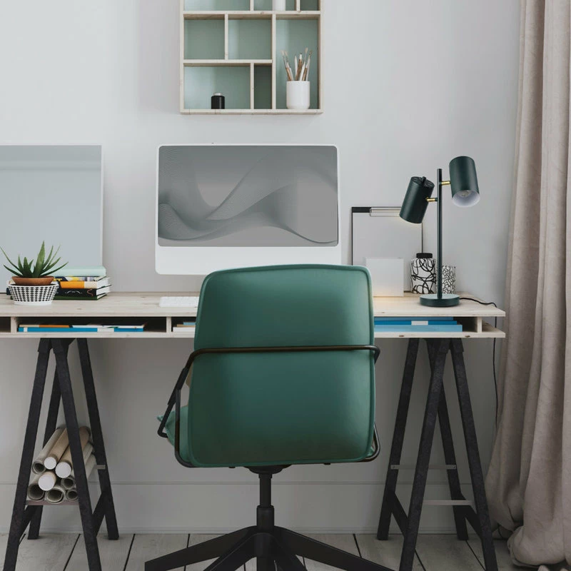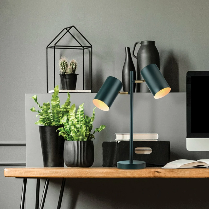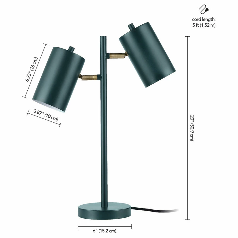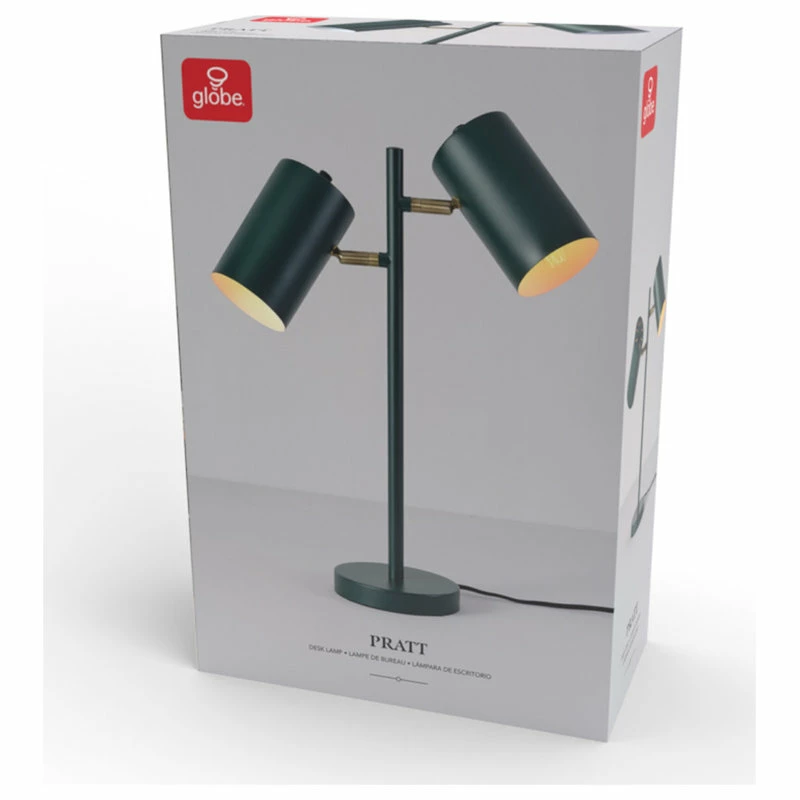 The Pratt Collection by Globe Electric offers a variety of styles that keep elegance in mind. With two cylindrical lamp heads that protrude from a slender lamp pole that juts from a weighted lamp base, the Pratt 2-Light Desk Lamp becomes the perfect focal point for any room. Each lamp head has it’s own on/off switch so you can choose how much or how little light you need for any situation. The matte forest green color accents any decor while the slim profile is great for placement – perfect for adding a little glam to your bedroom, living room, home office or den.