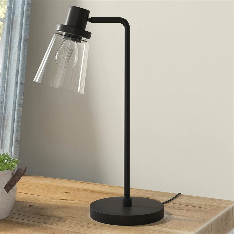 Elevate your reading nook or home office set-up with this sleek update on a traditional design. This task lampβs slender neck is gently arched and capped by an adjustable capped cone glass shade. Finished in a warm neutral metallic tone, this fixture will add polished contemporary style in any room of your home.