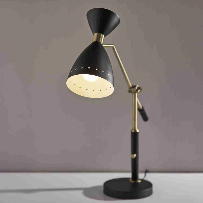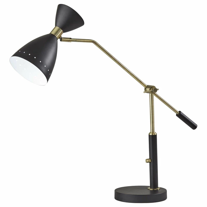 Add some mid-century flare to your workspace or bedroom with this Adjustable Desk Lamp. An adjustable oversized lamp shade and extended adjustable arm provides light where it is needed while putting a modern spin on your decor. Black and antique brass finishes are mixed to create the quintessential mid-century style. All lighting product is either UL or ETL listed, meaning that it has been tested and approved to meet the government-regulated safety standards for the USA.