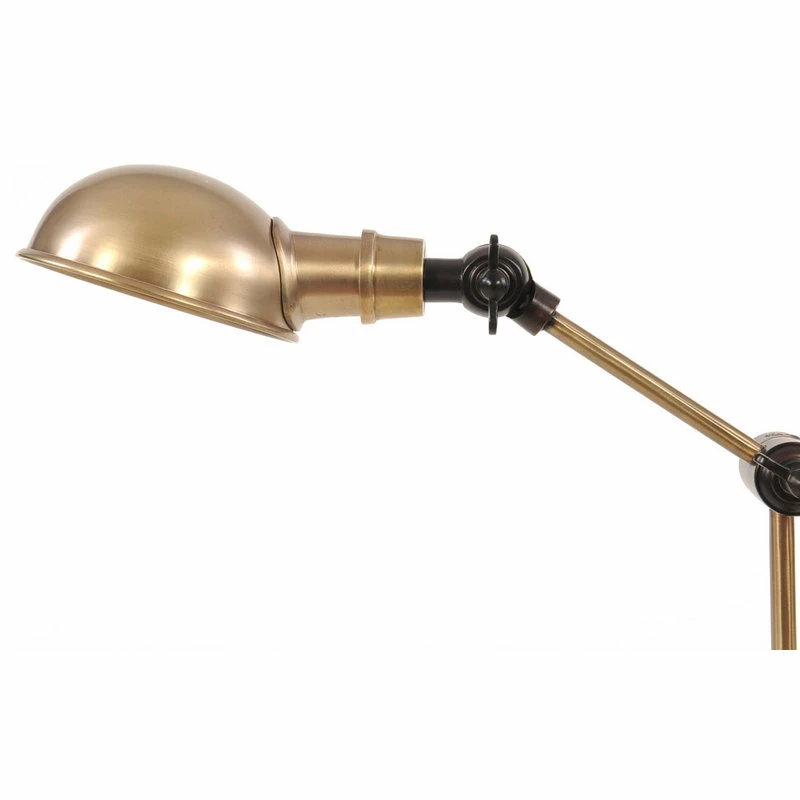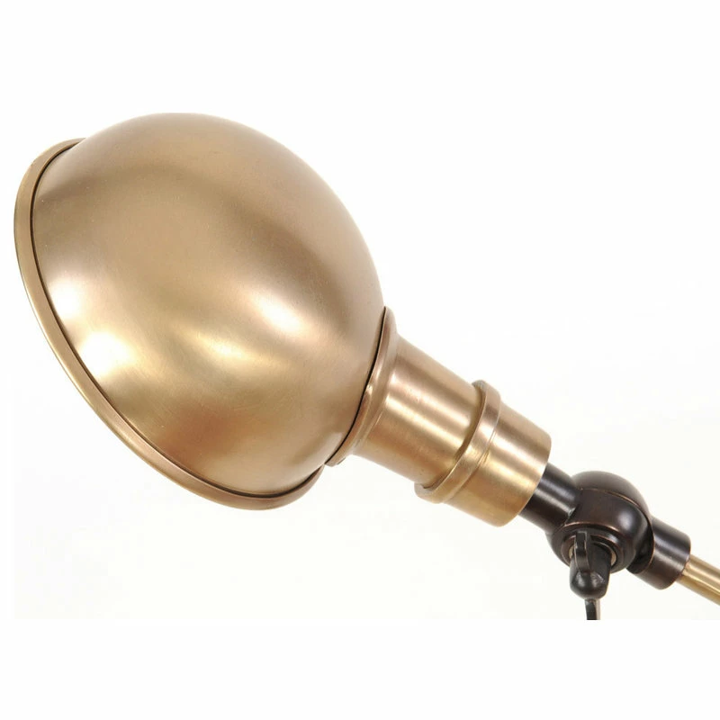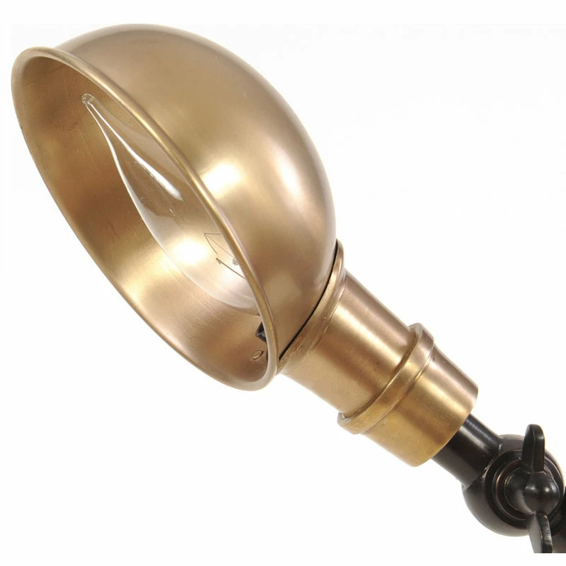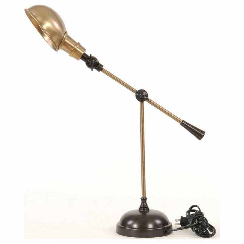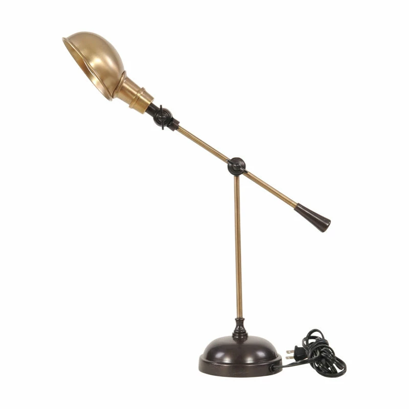 5.5″ x 2″ x 20″ Lamp Brass FinishThe idea of a desk lamp was tinkered with by many inventors throughout the 1920s until the parallelogram arm structure was finally agreed upon as a functional feature. Adjustable, bronze desk lamps are now a must for any office space or bed side. The nostalgic feel blends well with vintage or modern, giving you versatility in every way. Aluminum lamp with a brass base and shiny bronze finish 110 V/ 25 W bulb (bulb not included) Two-prong American plug