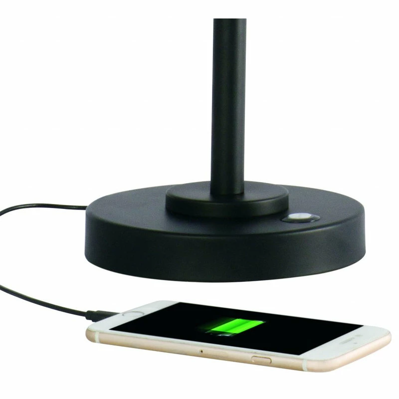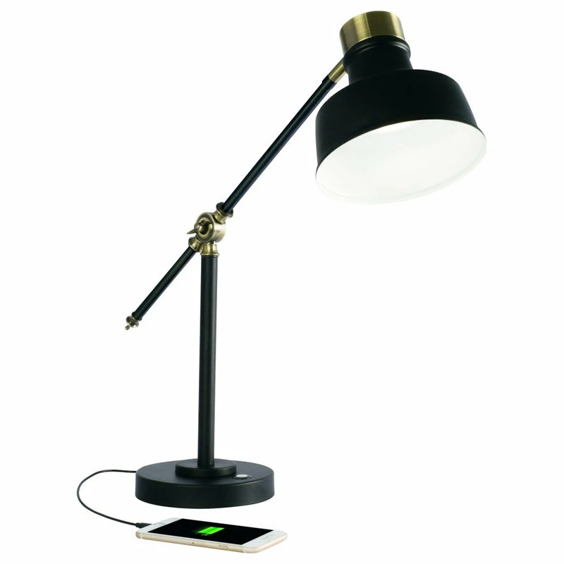 Create a chic vibe to your home office with this Matte Black and Antiqued Brass LED Adjustable Desk Lamp. With a touch of industrial era style, this desk lamp is super versatile as it also has a USB port to charge your electronic devices. Superior for its LED technology which is said to reduce eyestrain and increase comfort and clarity. It has a counterbalance arm that you can adjust for your desired position. It includes a USB port as well so you can charge your electronic devices. It has a chic black matte two tone metal finish with anqitued gold brass accents that looks great in any home office and will light up your space. 18″ x 4″ x 4″