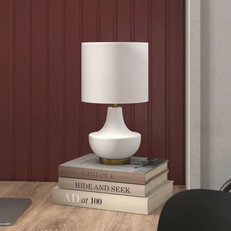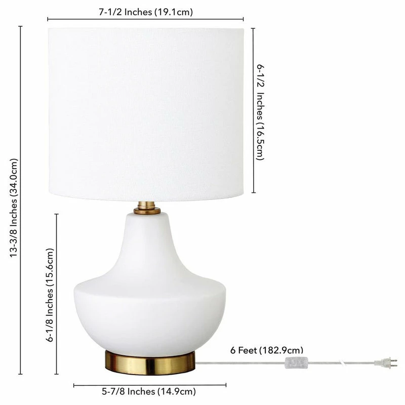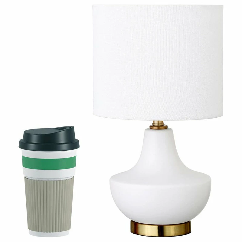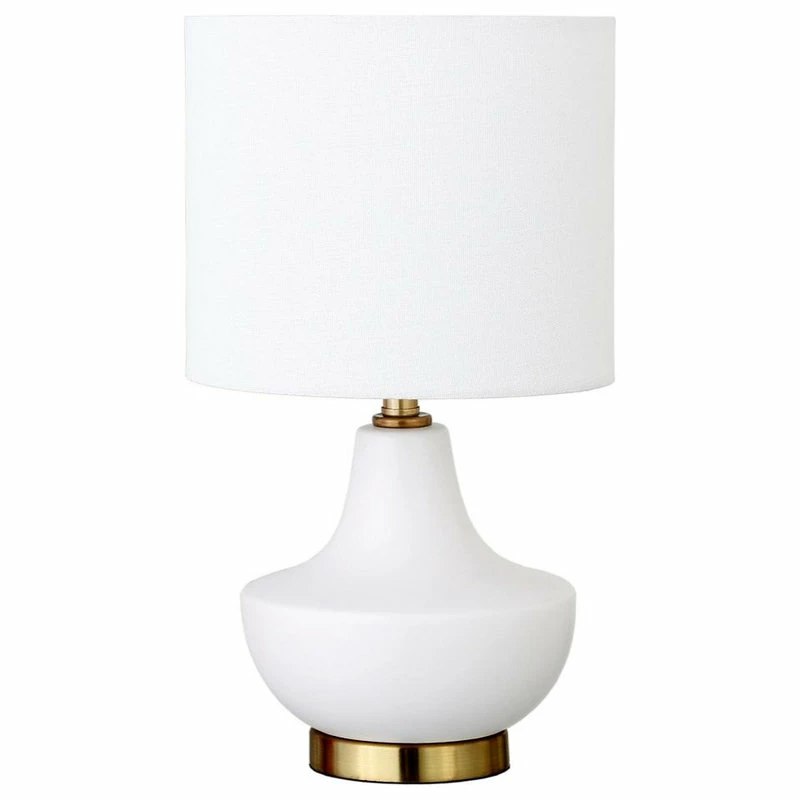 Illuminate your bedside, mantle, or hall table in traditional style with this classic yet eye-catching mini accent lamp. The flared urn shape of the base is made of matte-finished ceramic in neutral tones that let your color scheme take the lead. Accented with brass and a crisp linen shade, this lamp is the perfect piece anywhere you need to shed a little extra light.