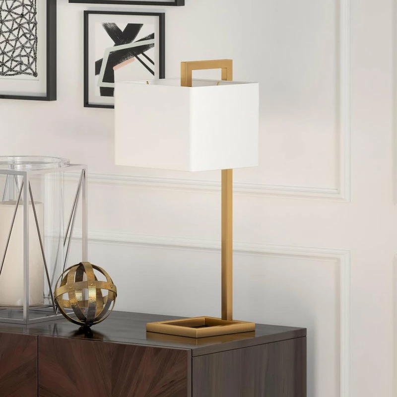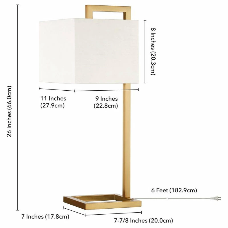 Illuminate your living room or add a touch of sleek ambiance to your bedside with this timeless table lamp. A square-shaped arc base combines with the cozy elements of a fabric cube-shaped shade for a clean but organic aesthetic.