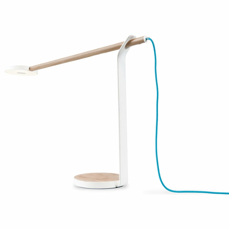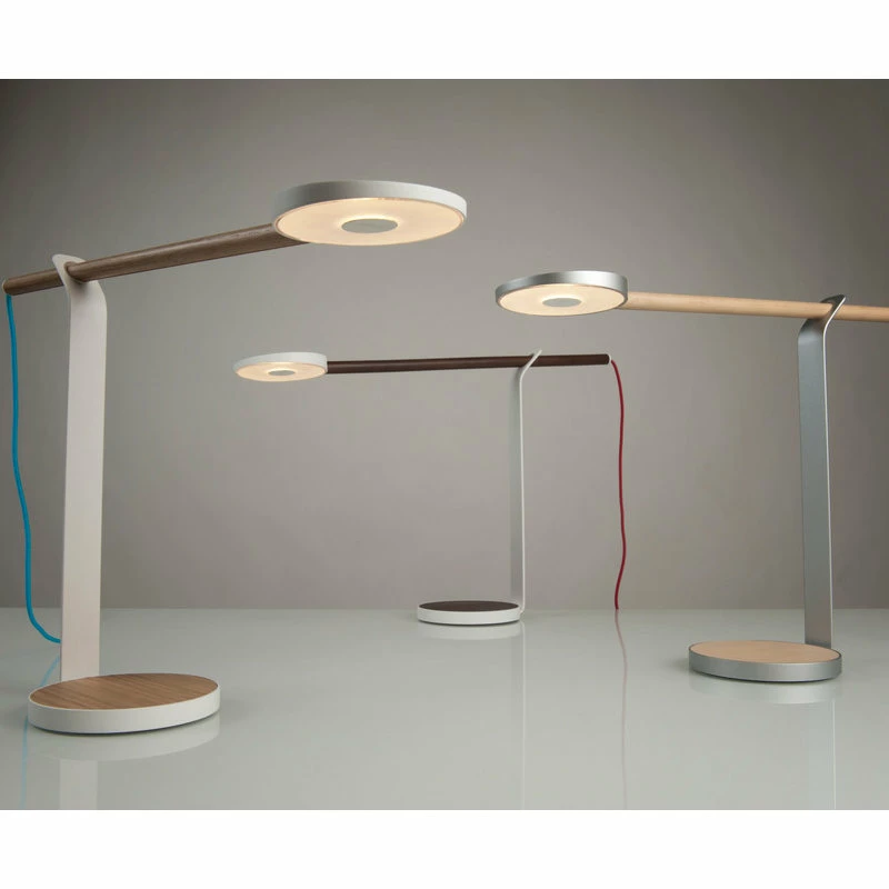 - The wood bar holding the illuminated LED head swivels 360 degrees, and also slides back and forth to provide the user with perfect lighting placement