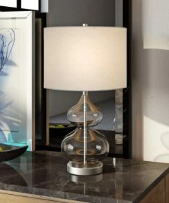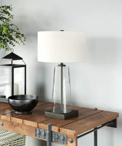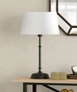 Budget โ Hudson&Canal Derek 24.25 Tall Table Lamp With Fabric Shade In Blackened Bronze/White ๐