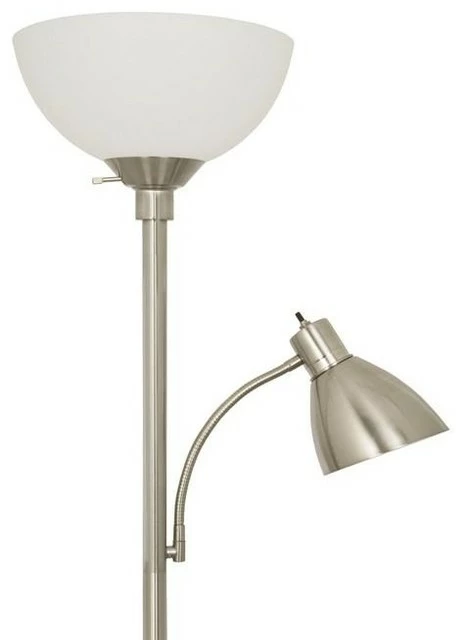 Sleek Satin Nickel finish with a gently curved white-frosted plastic shade