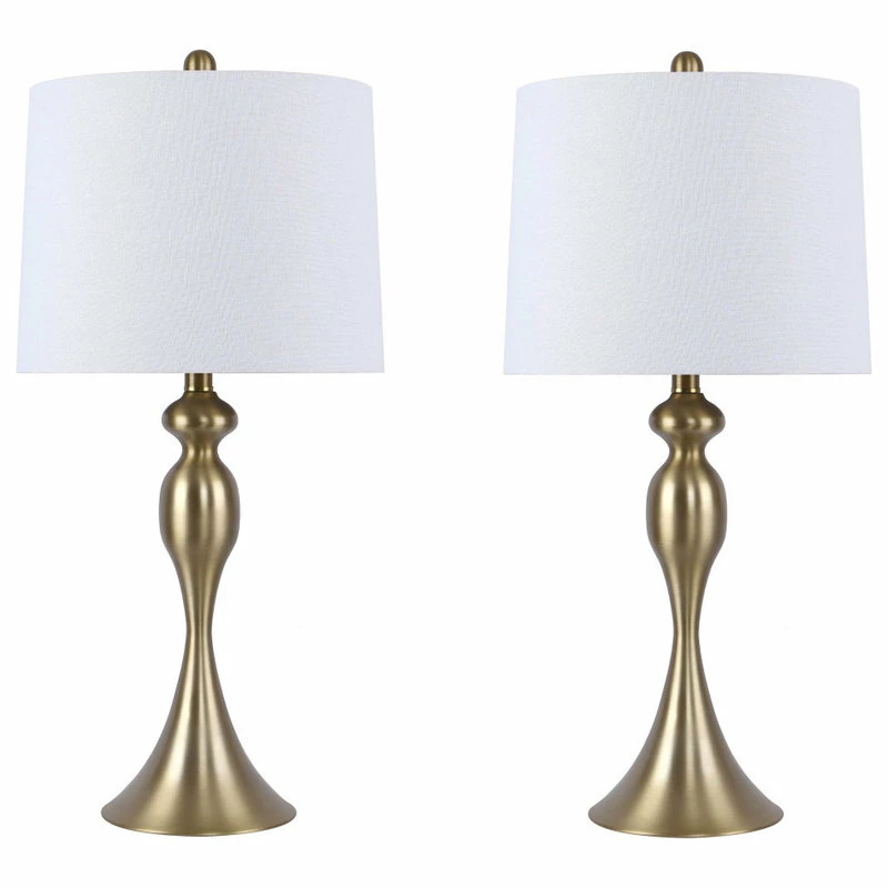 Discount ๐ LumiSource 27″ Plated Gold Curved Table Lamps With White Linen Shades, Set Of 2 ๐