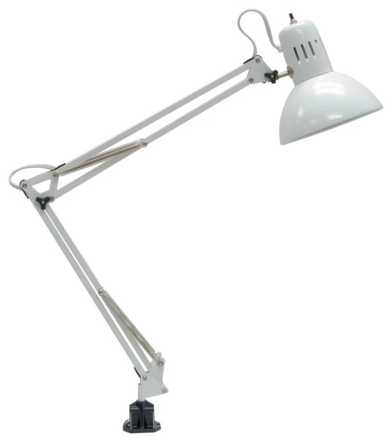 Modern and sophisticated, the Swing Arm Lamp complements any home or office set-up. The lamp’s flexible arm built of steel springs and tension control knobs extends up to 36″. Features: a sleek, high gloss finish. The clamp mounts easily to any Offex table.
