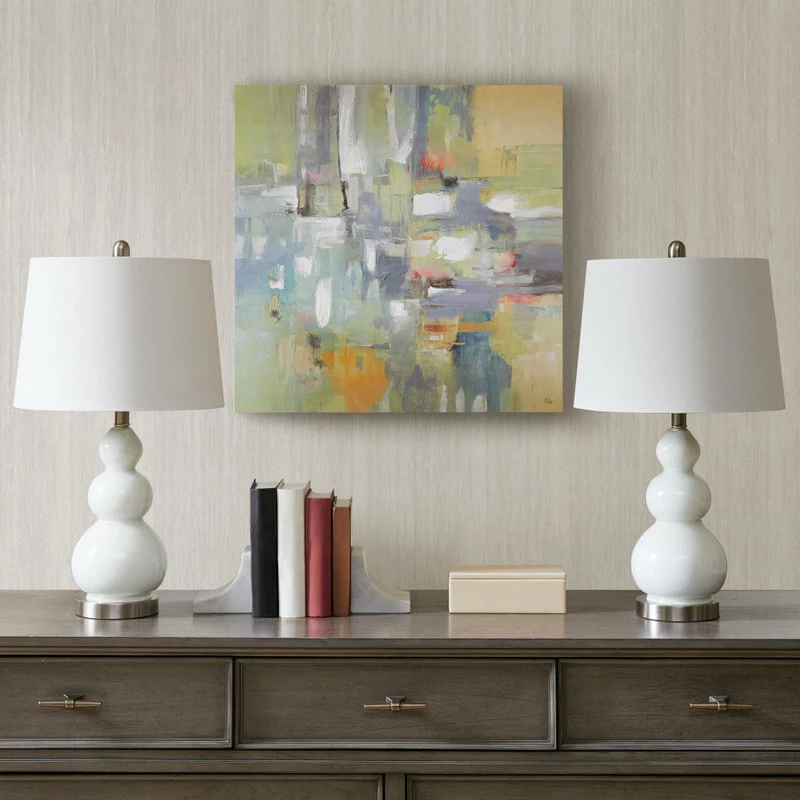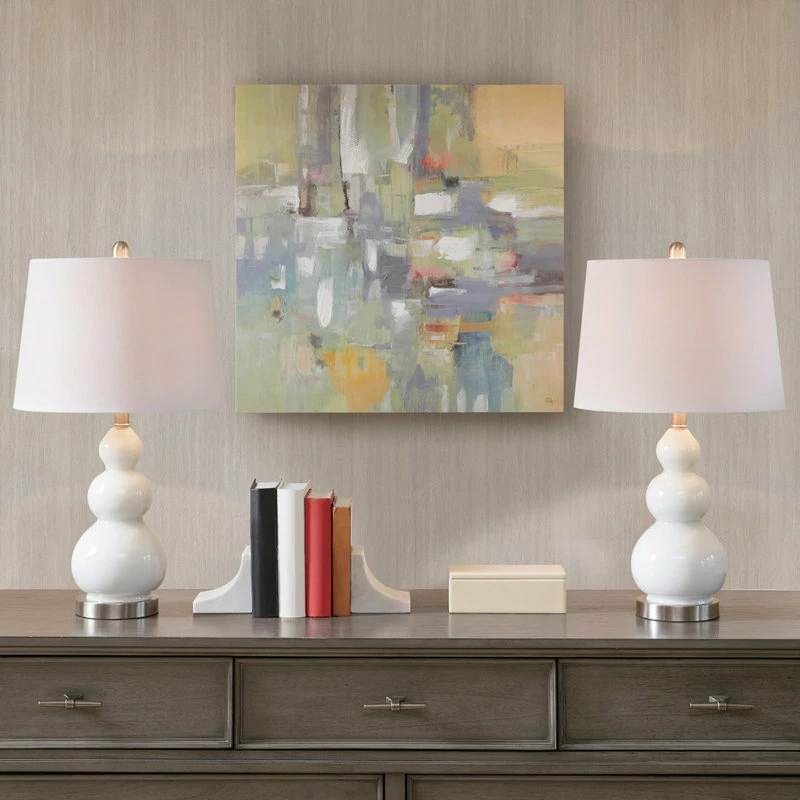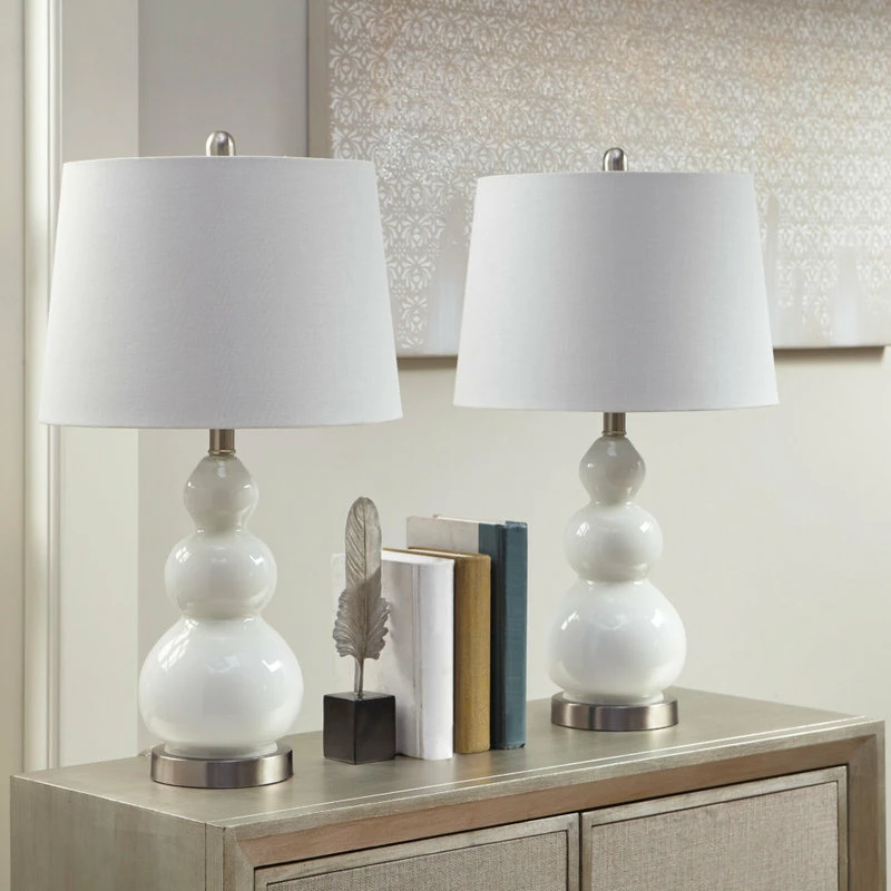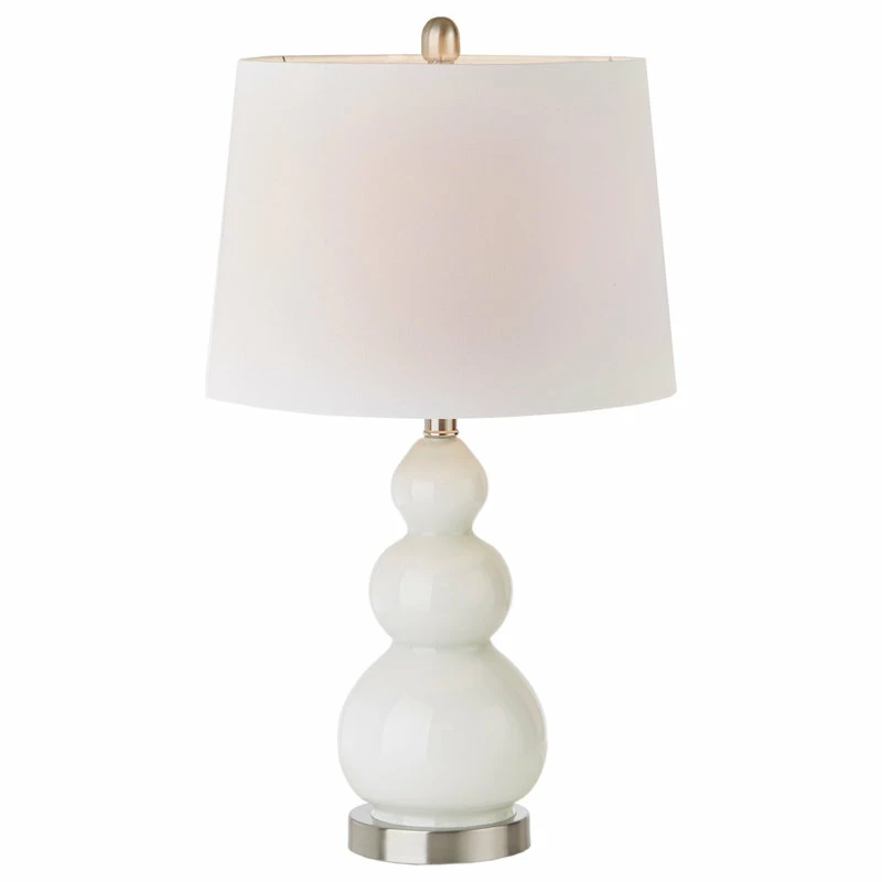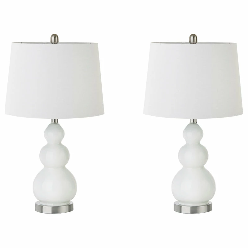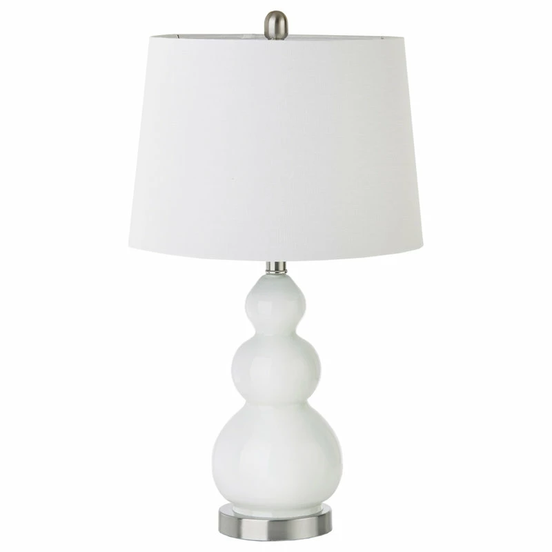 Enhance your space with the CoveyTable Lamp. The beautiful white glass and silver metal base is complemented by white tapered drum shape shade that adds the right touch to the design. Place this table lamp in your living room or bedroom to complete your home decor. One Type A bulb is needed.