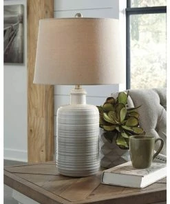 New 😍 Ashley Furniture Industries Marnina Taupe 24″ Ceramic Table Lamp Set Of 2 🥰