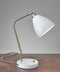 Cheap ❤️ Globe Electric 17″ Matte White Desk Lamp With USB Port 🥰