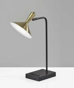Best Sale 👏 Globe Electric Luna 15″ Matte Black Desk Lamp With Matte Brass Accents 🤩