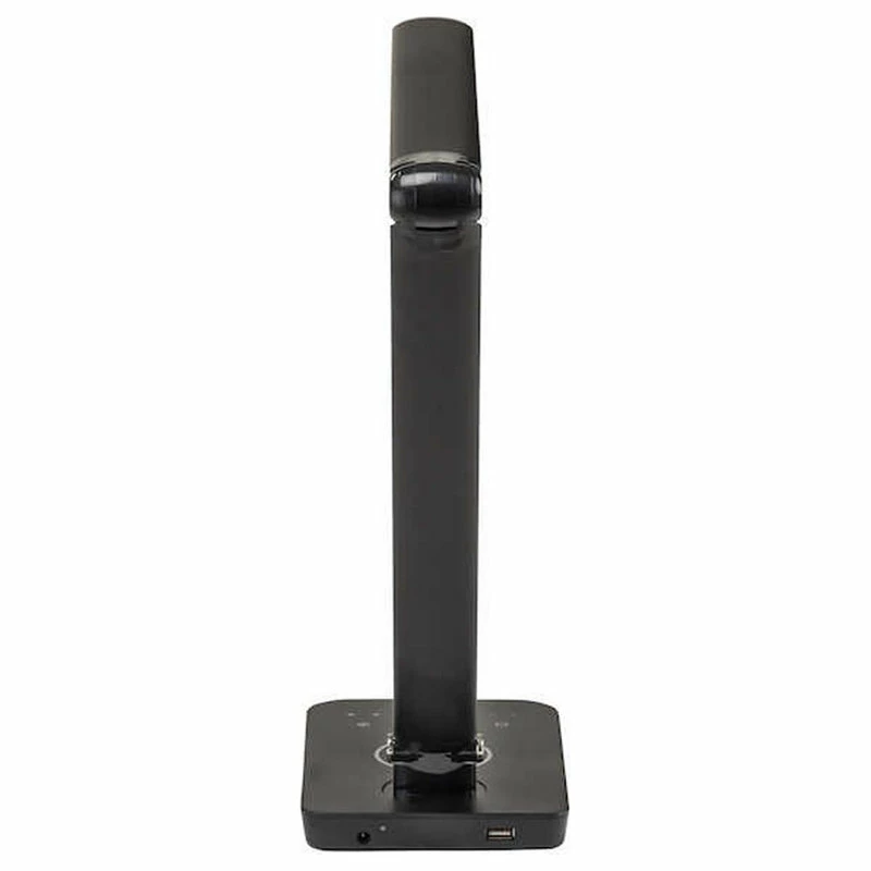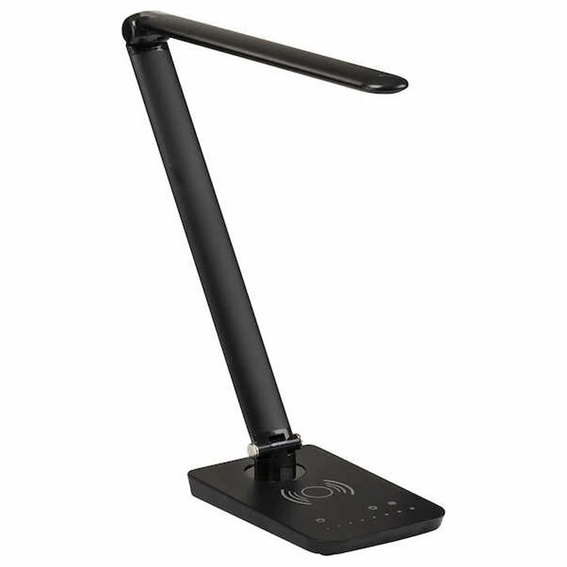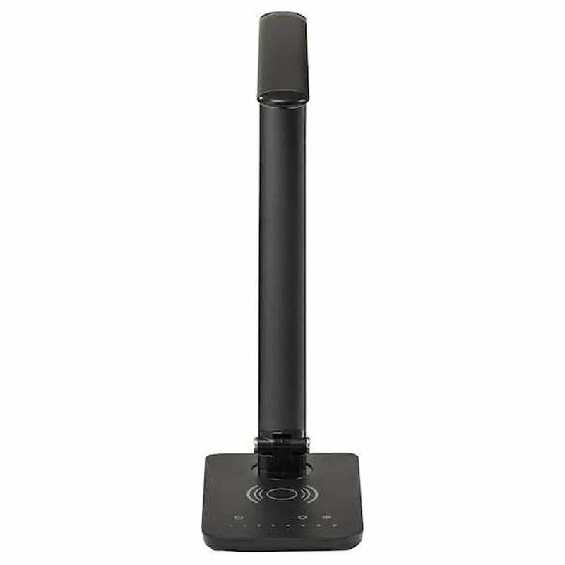 Vamp LED lighting offers flicker-free, energy-saving, economical lighting choices that can be easily customized to fit personal preferences. This versatile unit also comes with a quick and easy, built-in wireless charging pad. Featuring four different temperature settings with both warm light (sun icon) and cool light (snowflake icon) available. It also includes a touch-free dimmer switch to adjust the brightness with a memory button to recall the last setting. Swipe/tap to adjust the brightness. This allows the user to find the lighting that suits them best, which may help to lessen eye strain and create a more comfortable working environment. The flexible multi-pivot neck makes it easy to adjust the angle of the lighting as needed. The lamp also has a USB port on the back of the base, allowing for convenient charging capabilities for other electronics. For desk, home office use or other spaces where extra light is needed. Available in three color options to fit decor and personal preference. Input Voltage: AC110-240V. Not all mobile devices support wireless charging, check your device for compatibility.