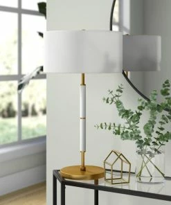 Brand new 🔥 Hudson&Canal Simone 25 Tall 2-Light Table Lamp With Fabric Shade In Matte White/Brass… ⭐