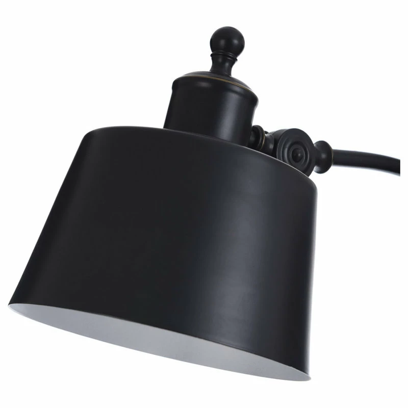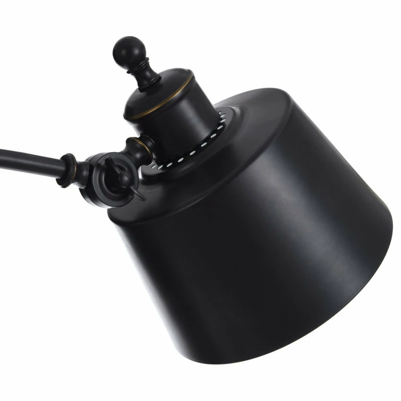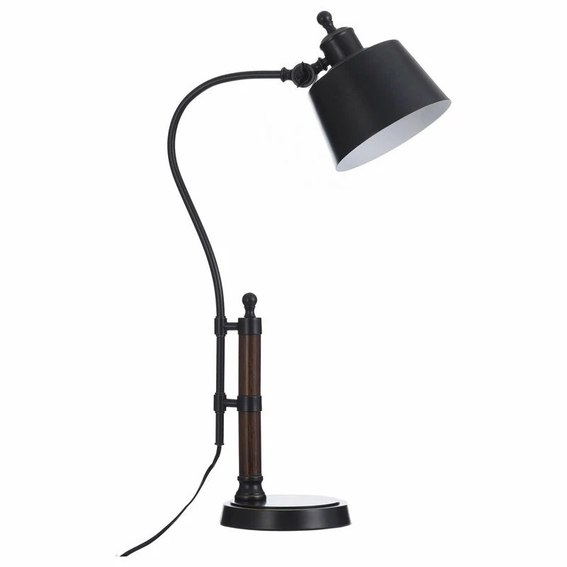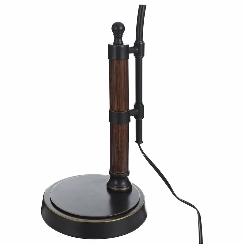 An industrial-inspired task lamp that’s ideal for an office desk or a bedroom nightstand, this fixture has a russet bronze frame with black accents. The shade is made of black metal. With its intriguing design and dark colors, this bronze table lamp is a striking addition to a hallway, dining room, or living room.