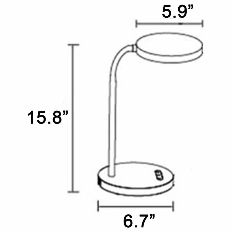 LED 14.2 inch Desk Lamp is 10W at 400 lumens with smooth touch switch for 3 brightness levels for 3 color temperature modes (3000K/4000K/6500K).High CRI. This desk lamp has a USB charging port and adjustable arm.